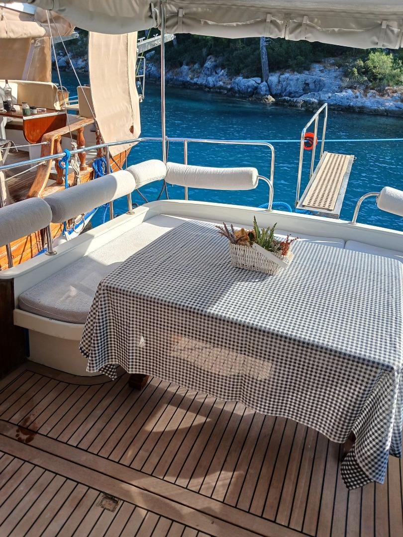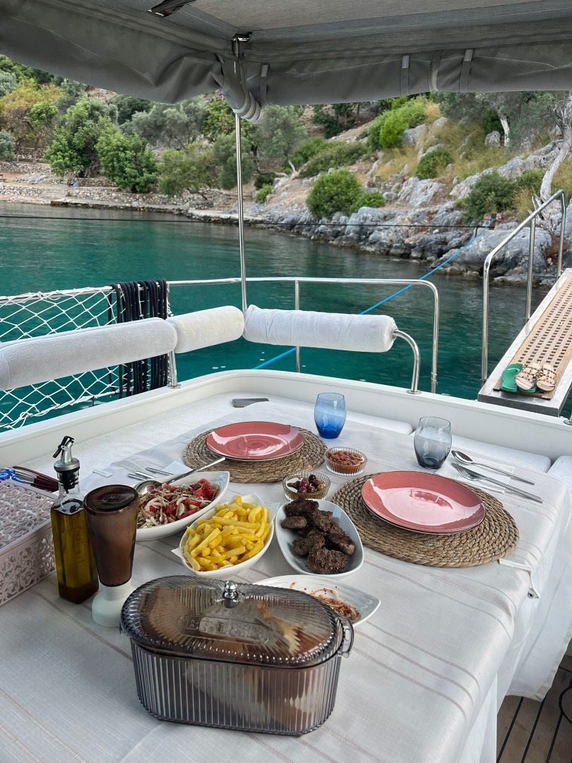 Teknemiz, deneyimli kaptan eşliğinde güvenli ve konforlu şekilde kullanılmaktadır.Yemek hazırlama ve servis personeli